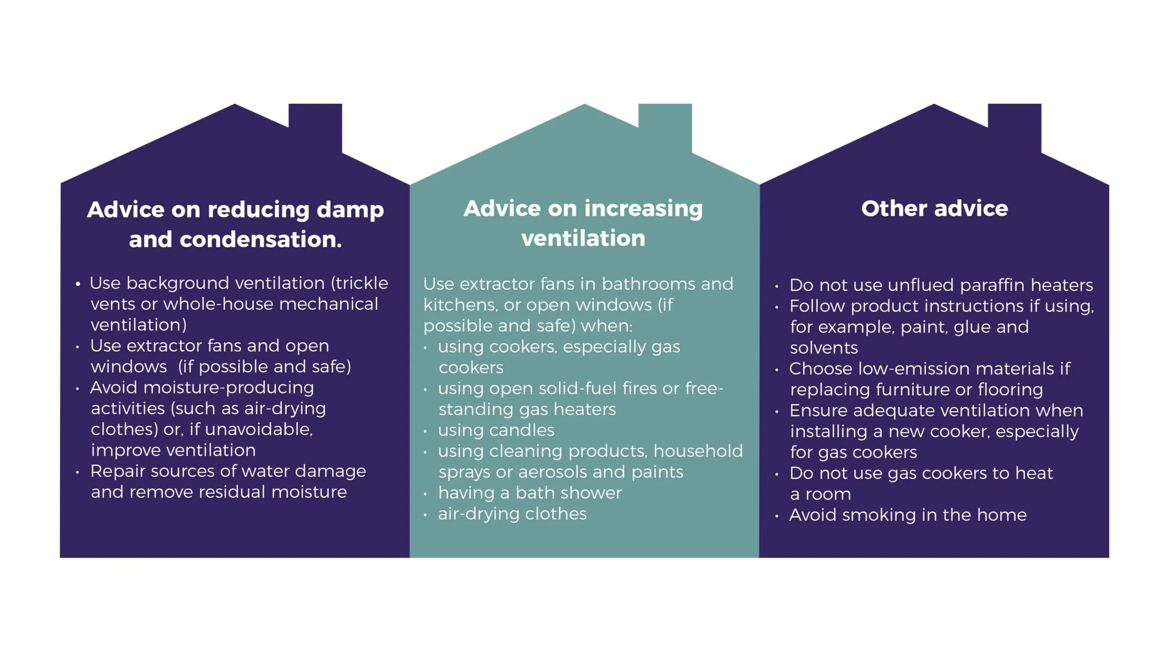 Here are some simple steps you can take to improve air quality in your home from NICE (National Institute for Health and Care Excellence):